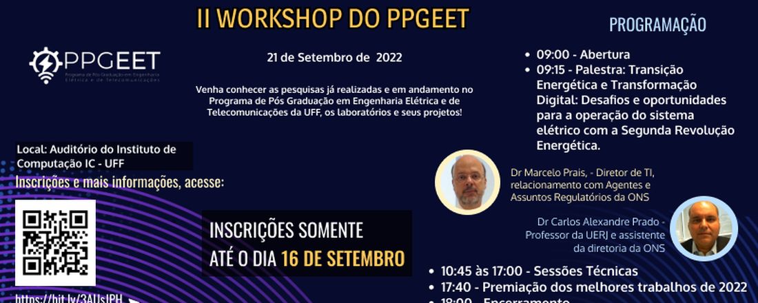 Para mais detalhes de nosso cronograma e informações sobre os discentes palestrantes acesse nossa página: II Workshop PPGEET